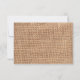 | This rustic wedding invitation is perfect for any country wedding. It features a rustic burlap print background with printed lace and a ribbon of twine on the side. Perfect for a country or barn wedding. Just add your RSVP date to the card. The burlap, twine bow and lace are just printed designs. It is not actual burlap fabric, lace or twine.