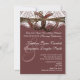 Rustic Country Horseshoe Wedding Invitations with a mauve plum colour background. Choose COLUMNED" or "LINEN" paper type for a more elegant invitation. Use this rustic wedding invitation template to design your own country style wedding invitations. Just add your wedding details to the template spots. The design has a rustic country PRINTED lace and twine bow design with two horseshoes at the top. It is a flat printed invite, not actual lace or twine bow. The sample wedding invitation wording reads "We're getting hitched! Please join us for the Marriage Celebration of..." The end of the invite reads "Bring Your Boots. Dinner and Dancing to Follow". These are great for barn wedding and country western weddings.