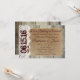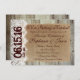 The date and time of the wedding ceremony at in bold flourish font on the side of the invite on top of the lace design. This casual country wedding invitation has the barn wood print background on the back side also. These are great as country weddings and barn weddings.