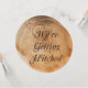 We're Getting Hitched Rustic Wood Tree Rings Wedding Invitations (printed on your choice of paper). These invitations are a printed design of rustic country tree rings. They are not actual wood. These are great for any type of rustic country wedding or barn wedding.