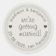 Chic and simple save the date label, with your names and wedding date in off-black modern typography on a grey background, and the text 'we're getting married' in stylish script font. Use these wedding stickers for your wedding gifts, gift bags or as a save the date envelope seal. Exclusively designed for you by Happy Dolphin Studio. If you need any help or matching products, please contact us at happydolphinstudio@outlook.com.