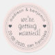 Chic and simple save the date label, with your names and wedding date in off-black modern typography on a pastel pink background, and the text 'we're getting married' in stylish script font. Use these wedding stickers for your wedding gifts, gift bags or as a save the date envelope seal. Exclusively designed for you by Happy Dolphin Studio. If you need any help or matching products, please contact us at happydolphinstudio@outlook.com.