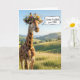 A charming giraffe wearing a crown of colourful flowers stands in a sunlit field, with serene rolling hills in the background and speech bubble.