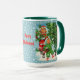 Christmas mugs with happy, cheerful children getting the Christmas tree back to home after cutting it in the forest. Personalise Text, more sizes and colours available!