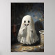 Ghost Brushing Teeth Bathtub Print, Bathroom Dark Poster