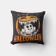 Ghost emerging from a giant Halloween pumpkin Cushion