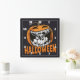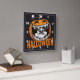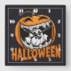 Ghost emerging from a giant Halloween pumpkin Square Wall Clock