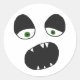 Ghost face design features big hooded green ghost eyes and large open black mouth with a few pointy teeth