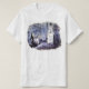 Ghost in the Graveyard T-shirt: A Ghost in the Graveyard by George Cruikshank circa 1826 depicts a lady with a lantern walking thru an old church graveyard /burial ground at night and being startled as two tricksters hiding behind a tombstone raising a makeshift ghost up from below. In a bit of further humour the artists has the headstone reading alas poor Yorick.