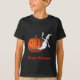 Whimsical ghost coming out of a mean looking Jack O Lantern pumpkin kids funny Halloween T shirt. You can change or delete the text. Available in assorted sizes, styles, and colours for men, women, and kids. Please visit my gallery to see more Halloween cards and gifts. Thanks for stopping by Smilin' Eyes Treasures!