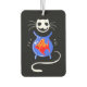 Hanging car air freshener with a skeleton ghost kitty cat and gold fish bowl.