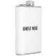 The flask itself is fine. It’s a cheap flask, obviously bought in bulk, however am prepared to overlook that. Given that it is a personalized item, I would have liked to have seen gift boxing instead of the generic packaging. Terrible printing, and/or quality. It’s a cheap, tacky vinyl. It is not cut straight and is also applied in a way that it is overhanging the bottom, causing the glue to catch on items and it will eventually roll and tear, damaging the wrap.