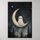 Ghost On Moon Print, Spooky Gothic Forest, Dark Academia
