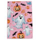 Cute Little ghost, bats and pumpkins on a pink background.