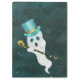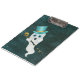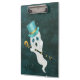 This clipboard has a white ghost with big blue eyes floating in a night sky with stars. He is wearing a blue top hat with a gold ribbon holding a fancy cane topped with a golden skull on the front and back.