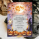 Set the scene for a magical night with this spooktacular Halloween party invitation featuring glowing jack-o’-lanterns, a friendly ghost, a witch with candlelight, spider webs, and a glowing full moon. Perfect for family gatherings, kids’ parties, or festive neighbourhood celebrations. Easily customise with your details and send out an enchanting invite your guests will love!