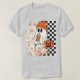 Playful ghost wearing a cosy orange beanie, paired with soft flowers and a chequerboard background. Great for t-shirts, tote bags, and stickers.