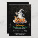 Ghost with Grey Witches Hat Black Halloween Invitation