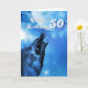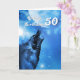 A ghost wolf howling to the winter moon. An unusual and unique design showing the full moon in the sky with stylised stars.