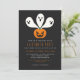 Invite friends and family to your spooky soiree with this fun Halloween party invitation. It features an illustration of a pumpkin and three ghosts at the top of the invitation with plenty of space below for all of the details about your party.