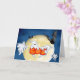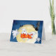This is a cute card picturing two happy ghosts holding a "BOO" sign as they are floating in front a bright full moon as other smiling ghosts and bats fly around them.