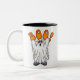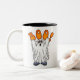 A little ghost wearing shoes and orange text that reads "BOO" is featured on Halloween trick or treat tote bags, T-shirts, mugs, buttons, and other ghost theme items.