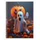 A fun and spooky Halloween notebook featuring a friendly ghost and a jack-o'-lantern. Perfect for taking notes, journalling, or as a unique gift.