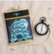 A majestic Pirate Ship with flowing, translucent sails emerges from tranquil waters, illuminated by a vibrant full moon.
