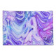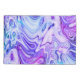 Bold purple and blue swirls create a marbled ink effect on a white background.