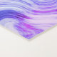 Bold purple and blue swirls create a marbled ink effect on a white background.