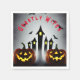 Ghostly Wipes Halloween Paper Napkins with Creepy Jack o Lantern and flying bats for your Halloween party table décor.  Design features a nocturnal scene with carved pumpkins in the foreground with witchy buildings in background and bats flying in the night sky. Part of the Creepy Jack 'o Lantern Collection. The wording can be changed as desired by using “Personalise this template” or the “Edit design” tabs.  By using the “Edit Design” tab you can change the font style, size and colour. Happy Halloween!