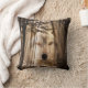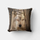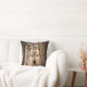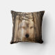 Photo of a wolf face superimposed onto a photo of woods with a sunbeam all in varying shades of brown or earth tones unique and interesting throw pillow