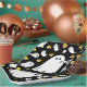 These cute paper plates feature a pattern of whimsical ghosts and candy corn on a black background. Perfect for Halloween parties or fall get-togethers, these fun plates are sure to put you and your guests in the Halloween spirit.