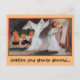 The front of this postcard has an image from a vintage Halloween postcard showing a little girl getting "spooked" by some cute Halloween sprites pretending to be a ghost. You can change the text under the image on the front to anything you want.