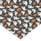 Cute ghosts float among grinning jack o'lanterns on a black background on this fun Halloween tablecloth.