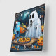 Ghosts carving pumpkins on Halloween Square Wall Clock