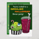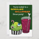 A Halloween Dinner Party Invitation featuring a gross looking green Cupcake with eyeballs an worm poking out the top next to a unusually coloured fizzy drink with a bone stirrer. Invite your friends round for a disgusting feast and see who has the strongest stomach! Customise all the text to suit your needs! Illustrations by Jojo Kneebone - Aka MuffinPuffART!