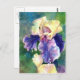 Watercolor of a lovely big soft bearded iris in all its glory. The blues, purples and yellows of the large summer bloom against a soft green background makes a dramatic statement. Used throughout history as a symbol of power by monarchs and royal families, the iris is also known as the Goddess of the Rainbow in Greek mythology. From the floral collection of the watercolor artist Katherine Foltuz.