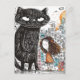 Giant Black Cat and the Girl in the City Postcard