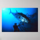 This is a photograph of a giant Bluefin Tuna caught in a net.