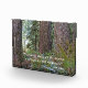 Acrylic photo block for display that features the photo image of a giant conifer forest along with an inspiring quote by naturalist John Muir that reads, "The clearest way into the Universe is through a forest wilderness." Makes a great gift for family and friends!