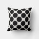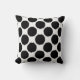 Throw pillow in a contemporary print of giant Ikat dots, with a subtle, striated pattern, in a classic combination of black dots on a white background