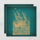 Giant Octopus Attacking Ship Teal Antique Kraken Card