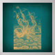 Giant Octopus Attacking Ship Teal Antique Kraken Poster
