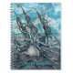 Giant Octopus Blue Sea Monster Sailboat Monogram Notebook