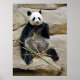 Giant panda (Ailuropoda melanoleuca) view from front and eating bamboo sitting on rocks