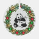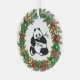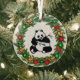 A Christmas wreath with a giant panda in the centre decorates this adorable glass ornament