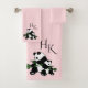 Panda mama sits eating bamboo while baby does as baby panda sees