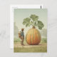 A surreal and whimsical artwork featuring a young traveller standing in awe before an enormous pumpkin with vibrant green leaves sprouting from its top. Set in a dreamy countryside landscape, this imaginative scene blends fantasy, nature, and adventure. Perfect for lovers of unique, quirky, and artistic designs, this piece makes an eye-catching wall art print or creative gift.