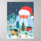 Christmas rustic design with Santa Claus looking over a town in winter.